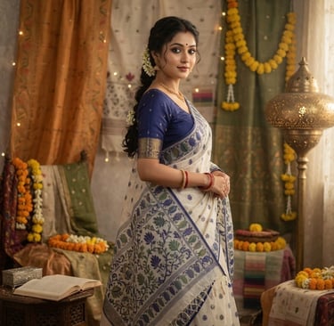 I adore the handpicked collection from Sri Vaibhavam Silks. The intricate designs and soft gold accents made my wedding day even more special.